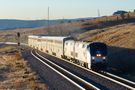 Following roughly an hour behind a westbound coal empty, the westbound Zephyr is making track speed as it kicks up a bit of fresh fallen snow dust at Leyden. Something else of note...if you look closely at the west house track switch on the siding, you'll note a chunk of track missing. UP took the west switch of the track out of service years ago. They removed the frog and spiked the switch.