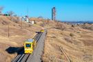 This machine is a continuous-action surfacing tamper. It lifts, lines, and tamps the track, as well as dynamically stabilizes the rails so that trains can safely run at track speed over the track. This is the final piece of equipment in the tie gang.