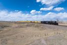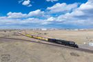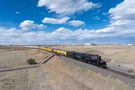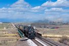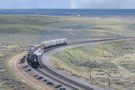 UP 4014 and train are currently running on the Borie Cutoff, rather than on Mains 1 or 2, which you can see in the distance. This stretch of track is roughly five miles long, and connects Speer Jct (southwest of Cheyenne) with the Overland Route. Trains coming up the Greeley Sub from Denver that are headed west, and have no stop in Cheyenne, will take this track. Same with their eastbound counterparts. Here, the Big Boy will run to Speer Jct and make a reverse move from Speer to the yard at Cheyenne.