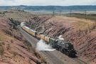UP 4014 rounds the bend from Tie Siding on Main 1, leading into the cut on the west side of Hermosa Tunnel. For whatever reason, UP typically runs trains on the left train between Tie Siding at Cheyenne. The tracks are, of course, CTC. So the dispatcher can run trains either direction on either main at his or her discretion. However, that discretion is generally the lefthand main.