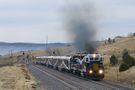If you haven't seen UP's newest "official" paint scheme yet, here it is! One thing you likely will immediately notice is that the wings have been removed from the nose in favor of the classic UP shield. My best guess is that the wings have been removed for monetary reasons, as the shield is much smaller. In any case, a pair of C44ACMs sit on the point of an eastbound passenger special, now tied down in the siding at Fraser. I was hoping for a side-by-side shot here with the eastbound Zephyr, but the Zephyr departed about 15 minutes earlier.