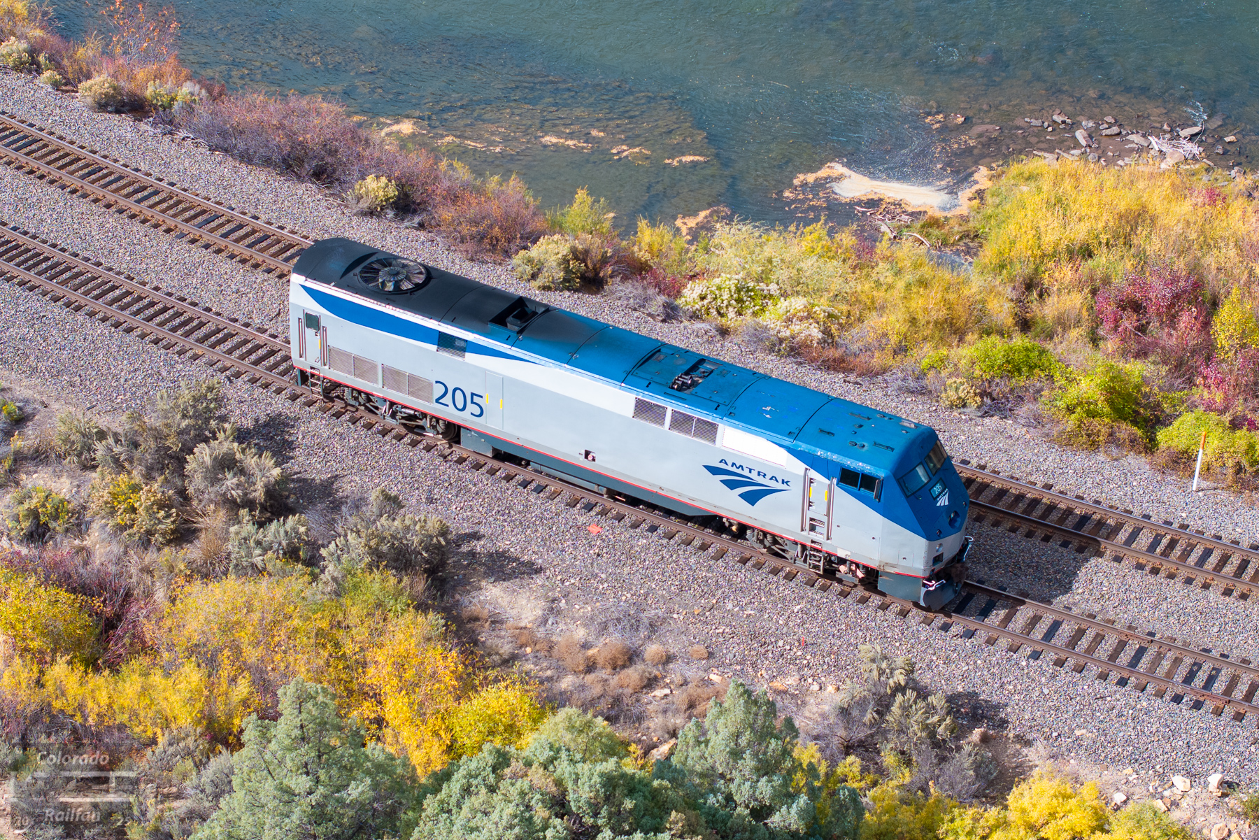 AMTK 205 was involved in a collision with a vehicle the day prior to this photo. As a result, for safety reasons, the unit was set out here in the siding at Dell. There is also another P42DC currently in the siding at Newcastle west of Glenwood from a similar incident.