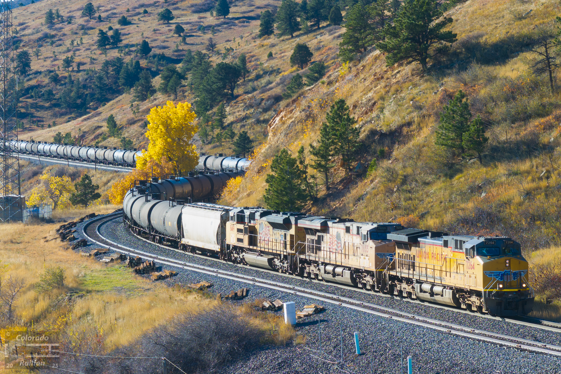 This westbound UP oil train is slowing to a stop on the main at the west end of Eisele. There is a PTC problem at the west switch this morning, and DS-378 cannot set up a signal for the train. The conductor will have to put the switch in hand throw and the train will flag by the signal.