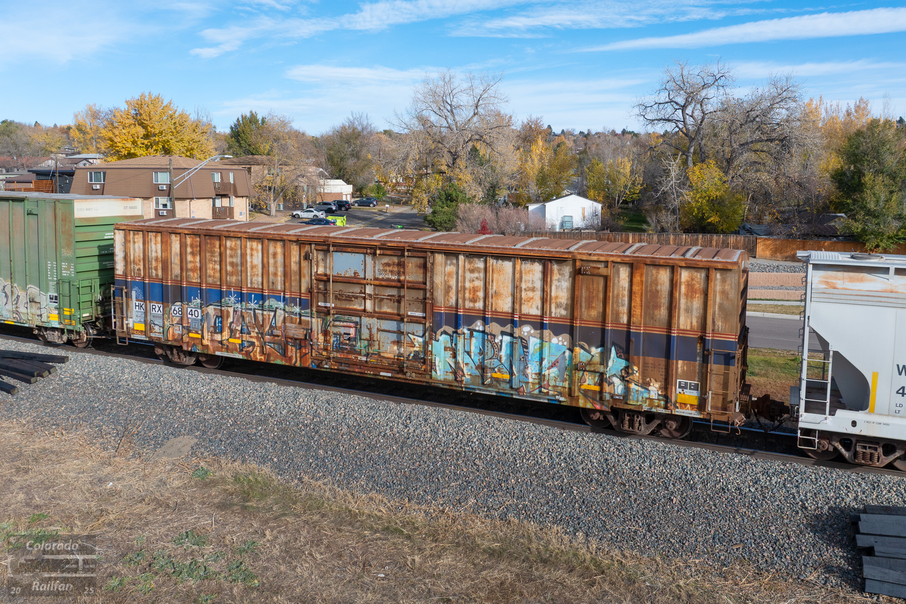 You might recall that for decades, Amtrak did haul mail on long distance trains. In the 1990s and early 2000s, Amtrak tried to help supplement revenue by hauling bulk mail and packages as well. Such things were hauled in box cars painted in Amtrak's Phase 4 scheme. Amtrak stopped the service in October 2004 as it was not actually generating a profit, and was delaying passenger trains due to freight moves at certain stations. The rolling stock was sold, and one such former Amtrak boxcar happened to be on this Provo-Denver today.