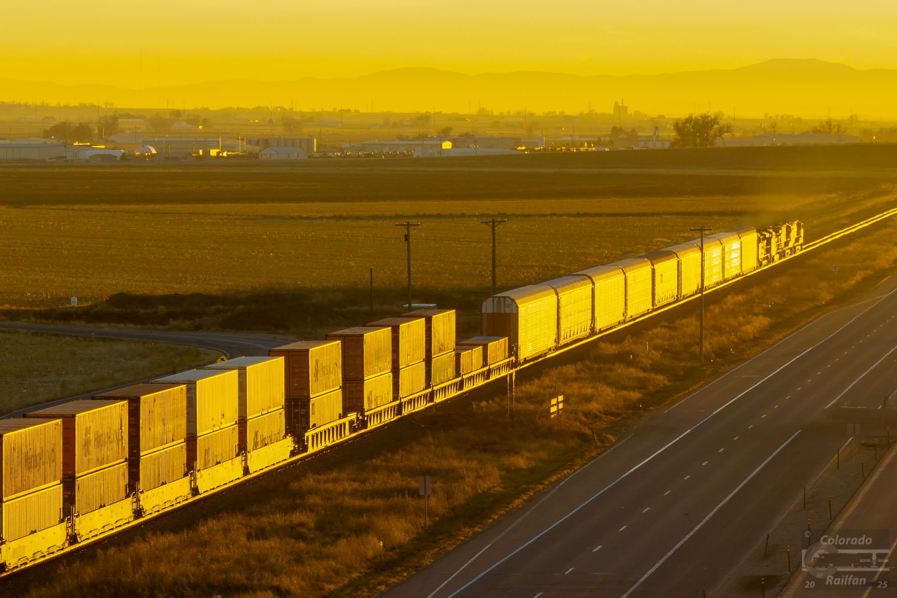 Four units lead a southbound Z-Train on the Greeley Sub between La Salle and Platteville. The train is making track speed on the trip south, making it very hard to catch up to for subsequent shots. Turns out this would be the last shot in daylight before the sun would set anyway.