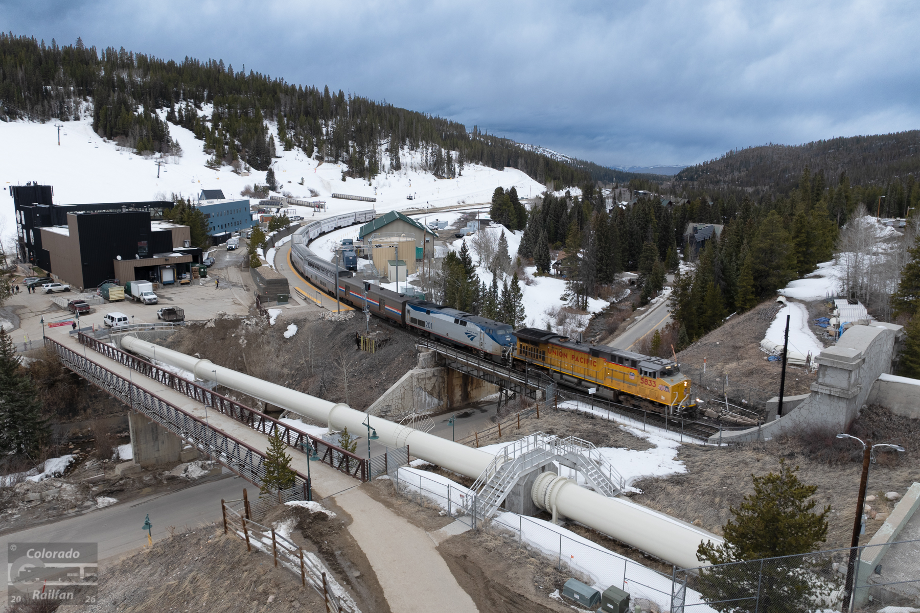 A seen that has change a lot over the years, and yet, at the same time, is timeless. For nearly a century, trains have passed through the scene, running through the 6.2 mile long Moffat Tunnel under the Continental Divide. The eastbound Zephyr, with a borrowed UP C44ACM, pass by the platform at the Winter Park Ski Resort, ready for 10-12 minutes of darkness ahead.