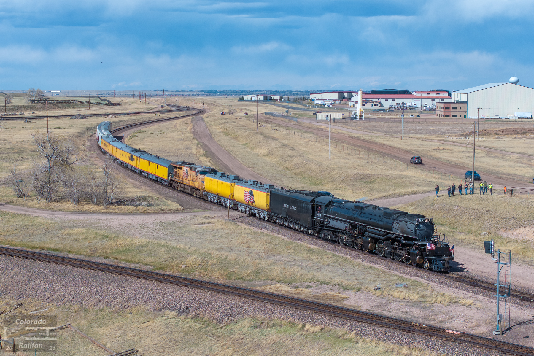 A bit of a photo line formed here at Speer, getting shots of UP 4014 and train as they make a reverse move back along the southeast leg of the wye at Speer Jct. The train will cross over to Main 3, and continue a reverse move all the way to the yard at Cheyenne.